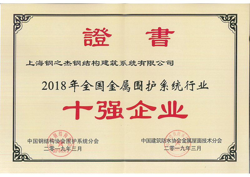 全國金屬圍護系統 “十強企業”