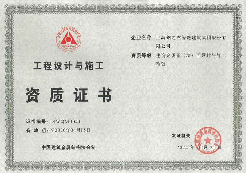 建筑金屬屋(墻)面設計與施工特級資質
