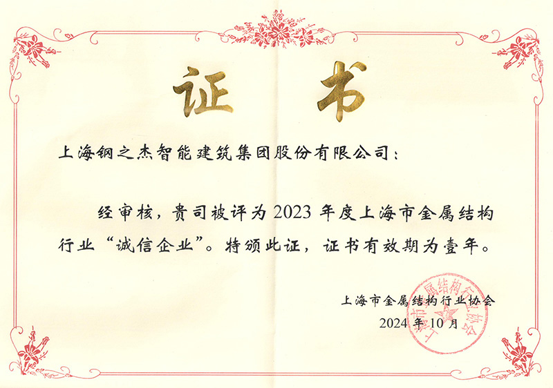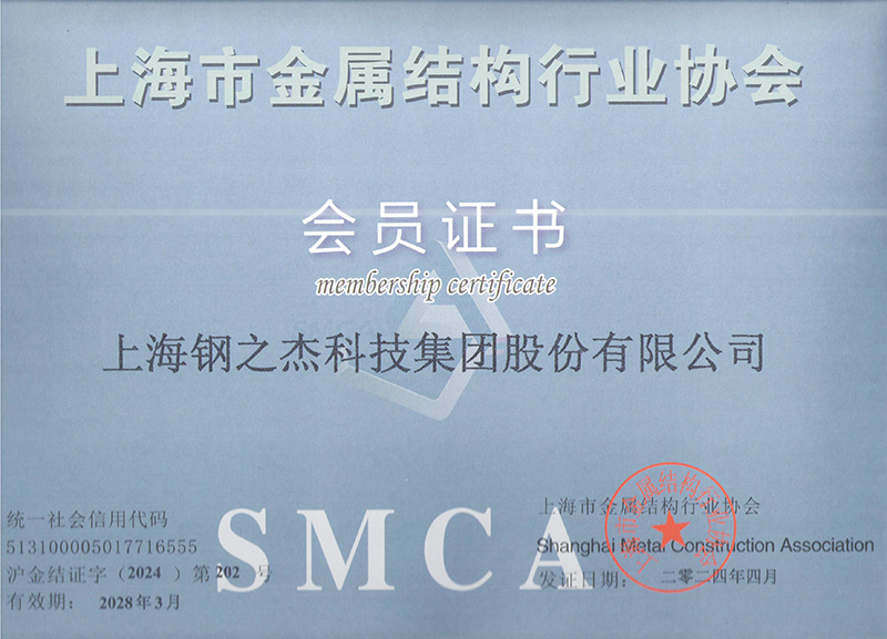 上海市金屬結構行業協會會員證書