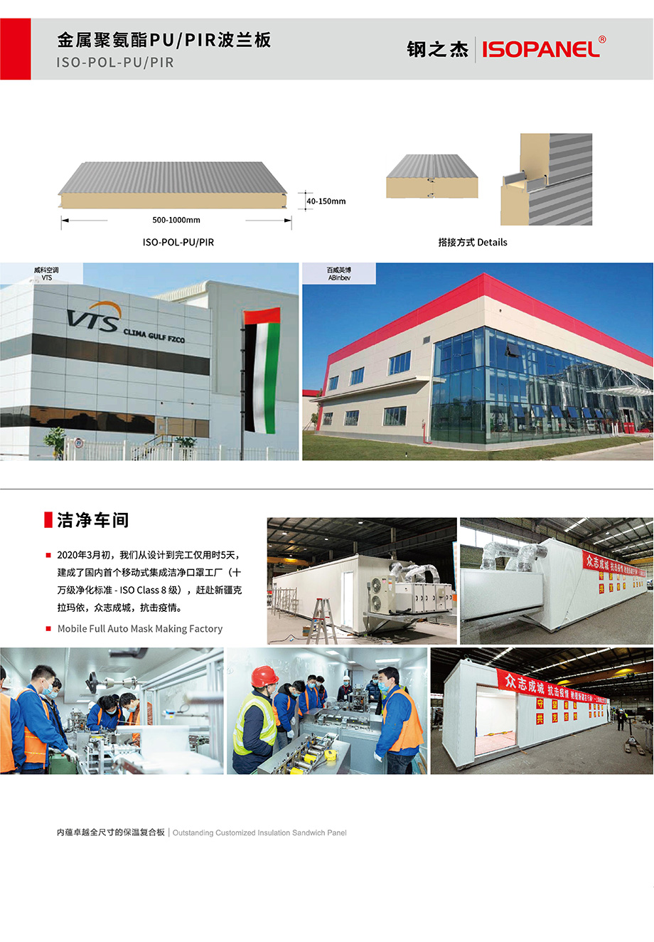 金屬聚氨酯PU/PIR復合屋面板、墻面板及波蘭板