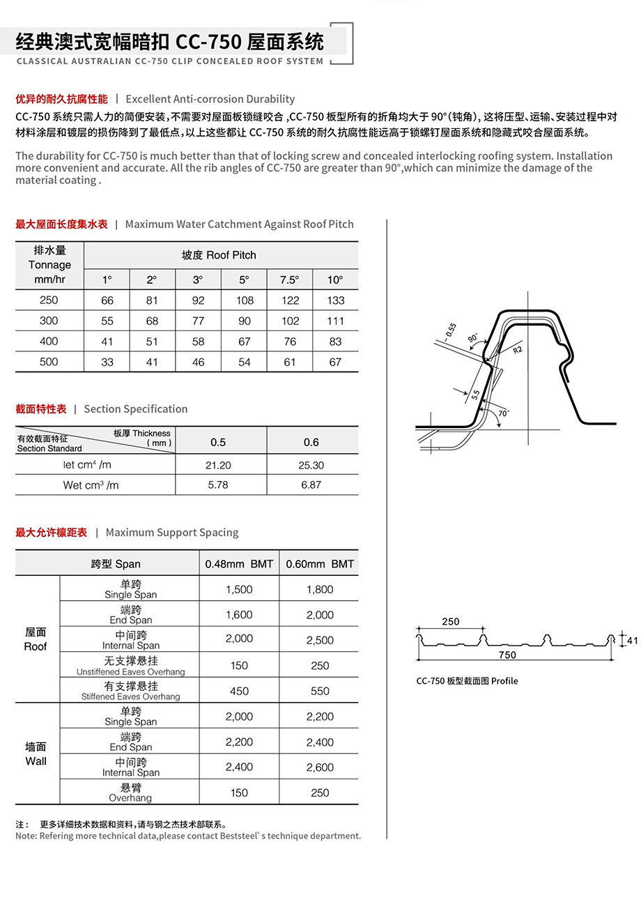 經(jīng)典澳式寬幅暗扣CC-750屋面系統(tǒng)