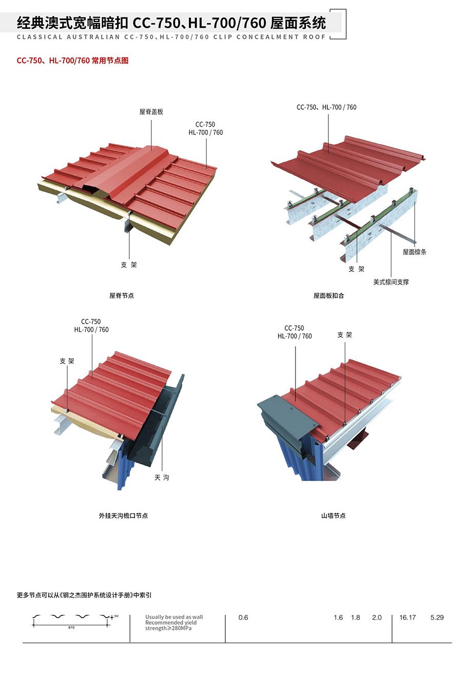 加強(qiáng)型澳式寬幅暗扣HL-700屋面系統(tǒng)